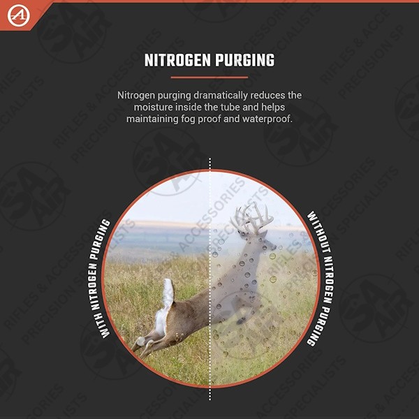 Fog Proof: Clear, unobstructed, and accurate sight picture in humidity. You can immediately engage your target when you take your rifle to cold ambient temperatures from warm inside temperatures. Prevents condensation from forming on the inside surfaces of the lenses, which cannot be wiped clean in the field.