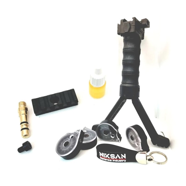 For optics, the Ozark-W features a Picatinny rail. Additionally, the rifle comes with a forearm Picatinny rail. This is perfect to fit the included bipod. Speaking of, in the case (yes that’s right, the gun is supplied in a tough hard case lined with foam) you will find all the extras. You get 4 magazines, a bipod, a very comprehensive user-manual, cleaning oil and a cleaning cloth. You will also find a really neat key ring!