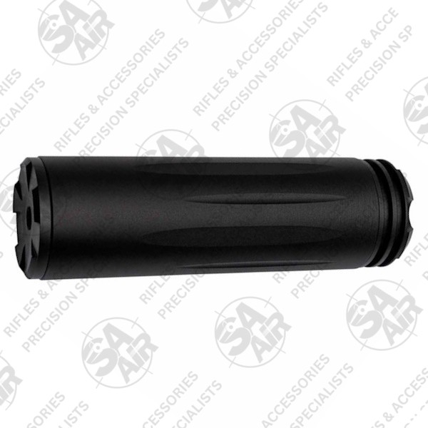 The outer casing is constructed of aluminium alloy and with some attractive detailing and fluting all part of the design, these moderators do look the business. This silencer (or sound moderator) also has a purposeful matt black glare reducing firearms finish. Whatever airgun rig you may have, this short sound moderator will finish the look off nicely. And you don’t have to worry that the looks outweight the performance, either!